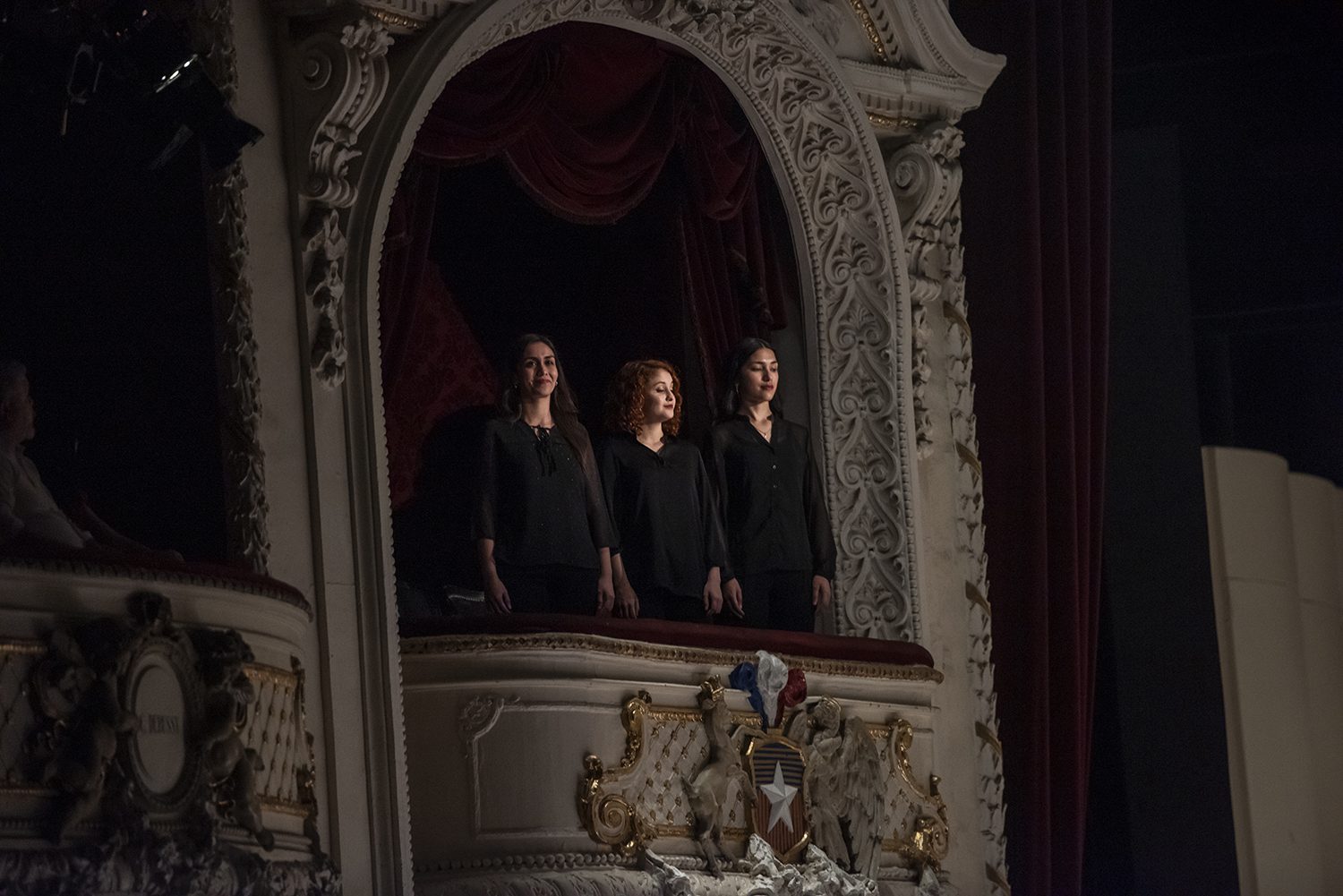 Coro de Niños (cantado por trío de muchchas) en palco lateral. foto Patricio Melo