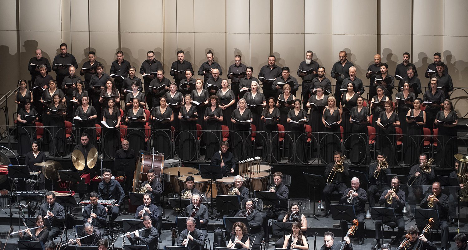 El Coro del Teatro Municipal y partes de las maderas, bronces y percusión. foto Patricio Melo