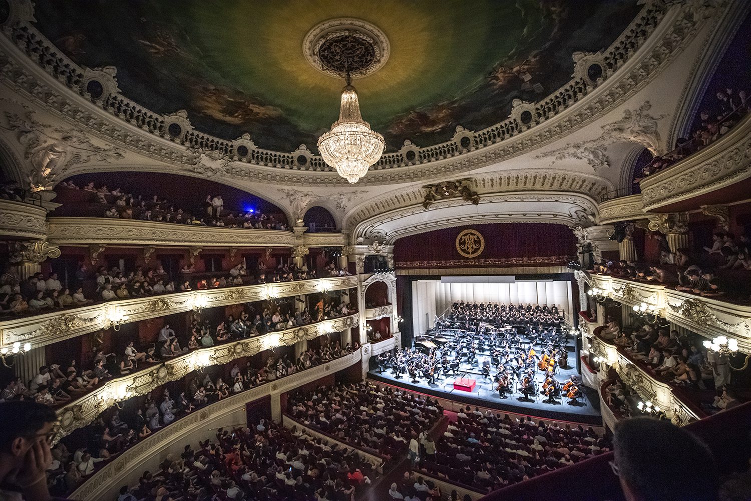 Vista general desde las localidades altas, escenario, platea, palcos, balcón y galería, antes de comenzar.