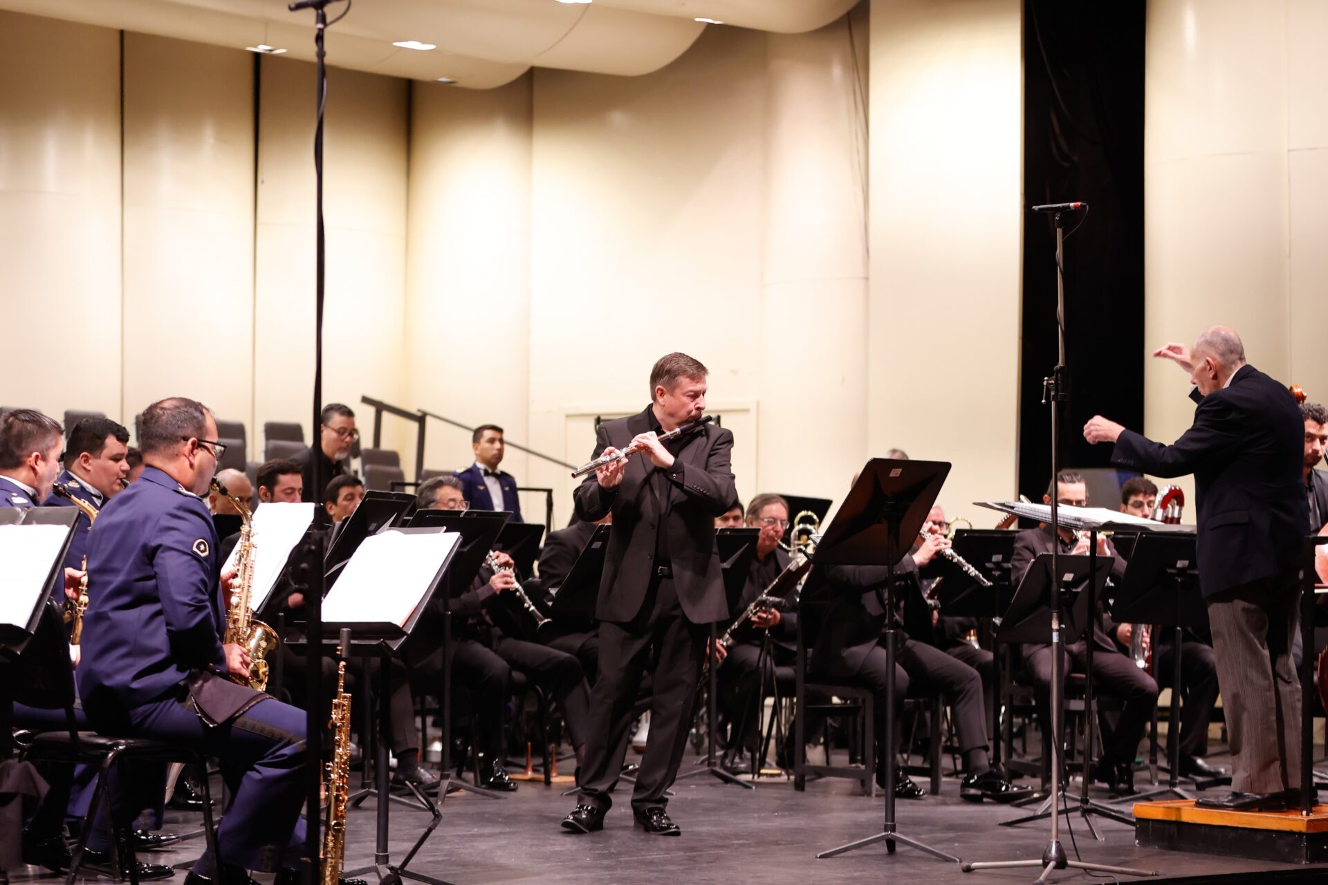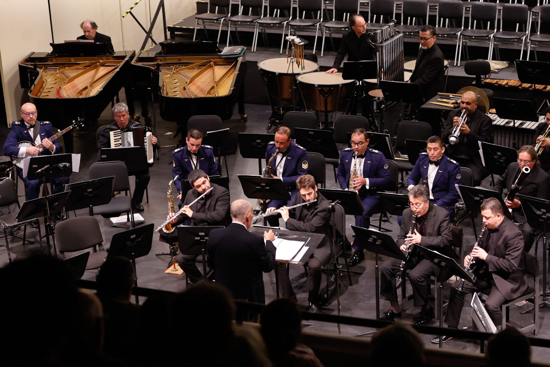 En lo musical, el concierto se inició con “Fanfarria y tema en estilo americano”, del director y compositor de la Banda Sinfónica de la Fuerza Aérea del Chile, Fabrizzio De-Negri quien dirigió a la mezcla de músicos de ambos conjuntos.