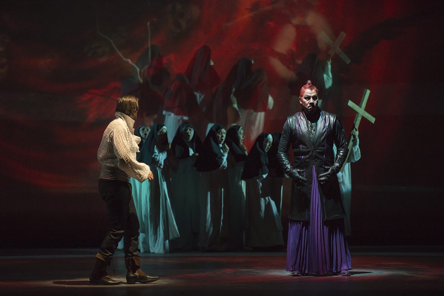 Otro aspecto de interés es el como los personajes lograron interactuar entre ellos, revelando emociones, ironías, esperanzas y deseos, asumiendo el escenario y los pocos elementos de la minimalista escenografía; convincente la escena de amor entre Fausto y Margarita, tanto como los desafiantes diálogos de Mefistófeles con Fausto, o como este último se dirige a los parroquianos en la taberna, a sus huestes sean estos espíritus, silfos, fuegos fatuos o habitantes del inframundo.