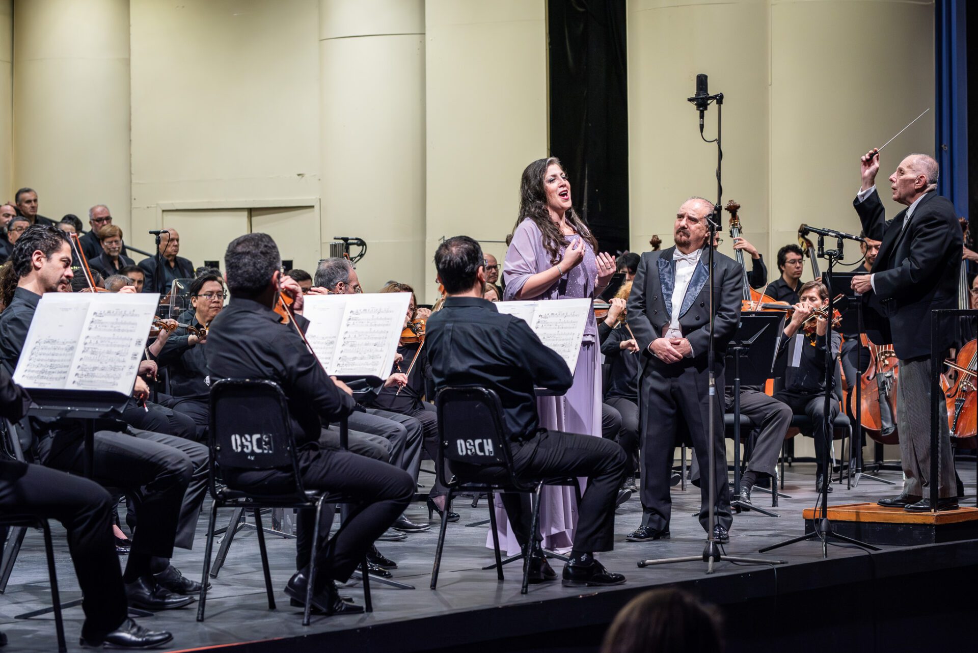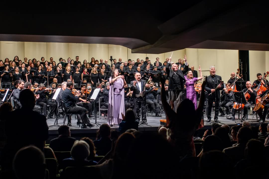 Orquesta, solista y Coros en fragmento de Carmen, dirige Rodolfo Saglimbeni foto Gloria Henríquez